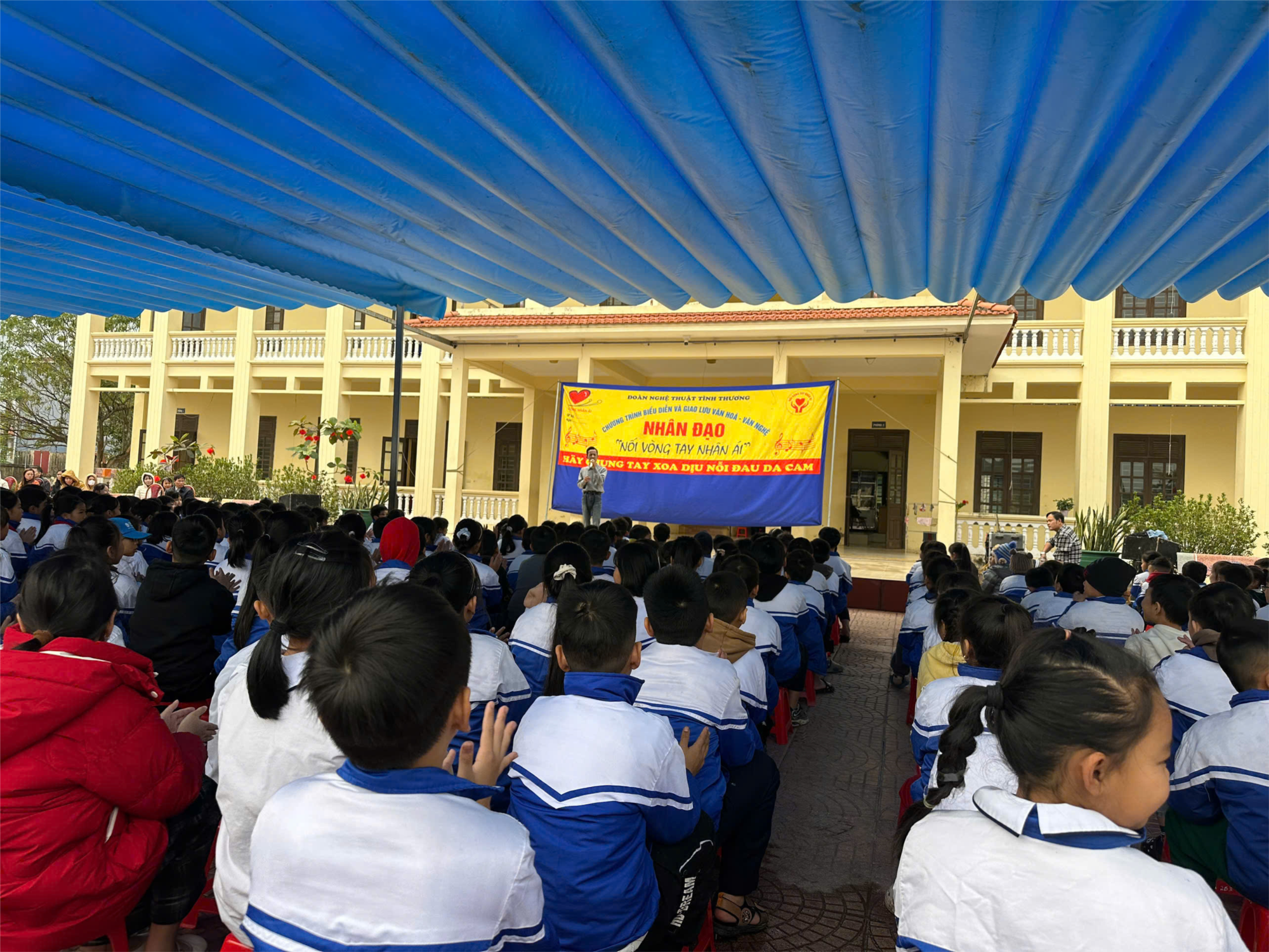 Sáng ngày 15/01/2025 trường tiểu học Toàn Thắng - Tiên Thắng (tại cơ sở 2), kết hợp với Đoàn nghệ thuật tình thương đã tổ chức Chương trình giao lưu văn nghệ "Nối vòng tay nhân ái", chung tay xoa dịu nỗi đau da cam. Tại buổi lễ, Đoàn nghệ thuật đã biểu diễn các tiết mục xiếc, ca nhạc, ảo thuật phục vụ các Thầy cô giáo cùng các em học sinh, các em học sinh phấn khích tham gia.